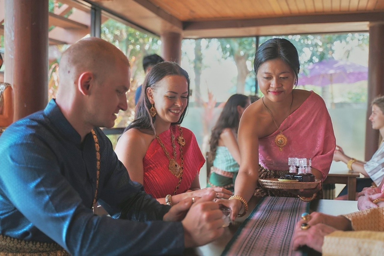 - Thai house staff lead customers for “Thai cultural art activity”