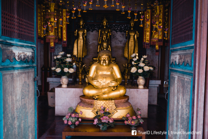 แต่เดิมภายในศาลเจ้าประดิษฐาน เจ้าพ่อโจวซือกง และ เจ้าพ่อกวนอู แต่ปัจจุบันนี้ ศาลเจ้ามีเจ้าแม่กวนอิม เป็นองค์ประธานหลักนั่นเองค่ะ